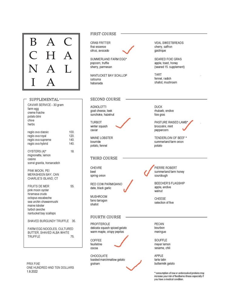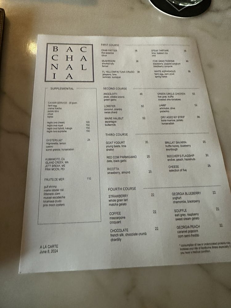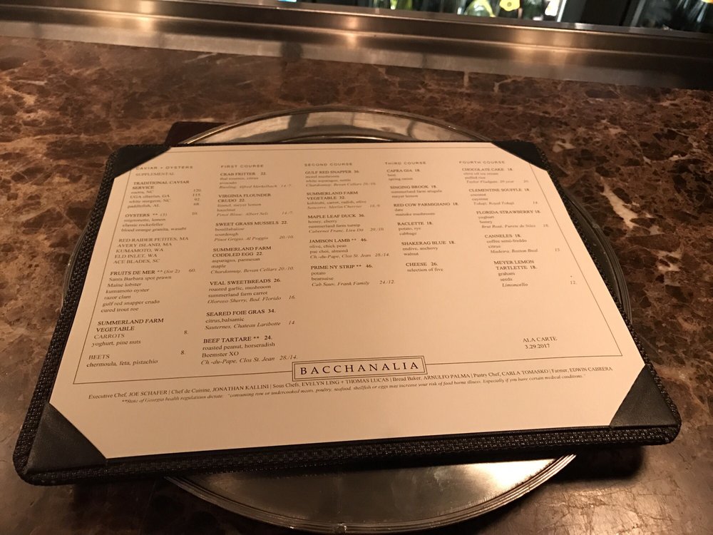 Bacchanalia Menu (2025 Update)