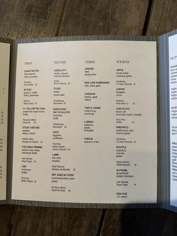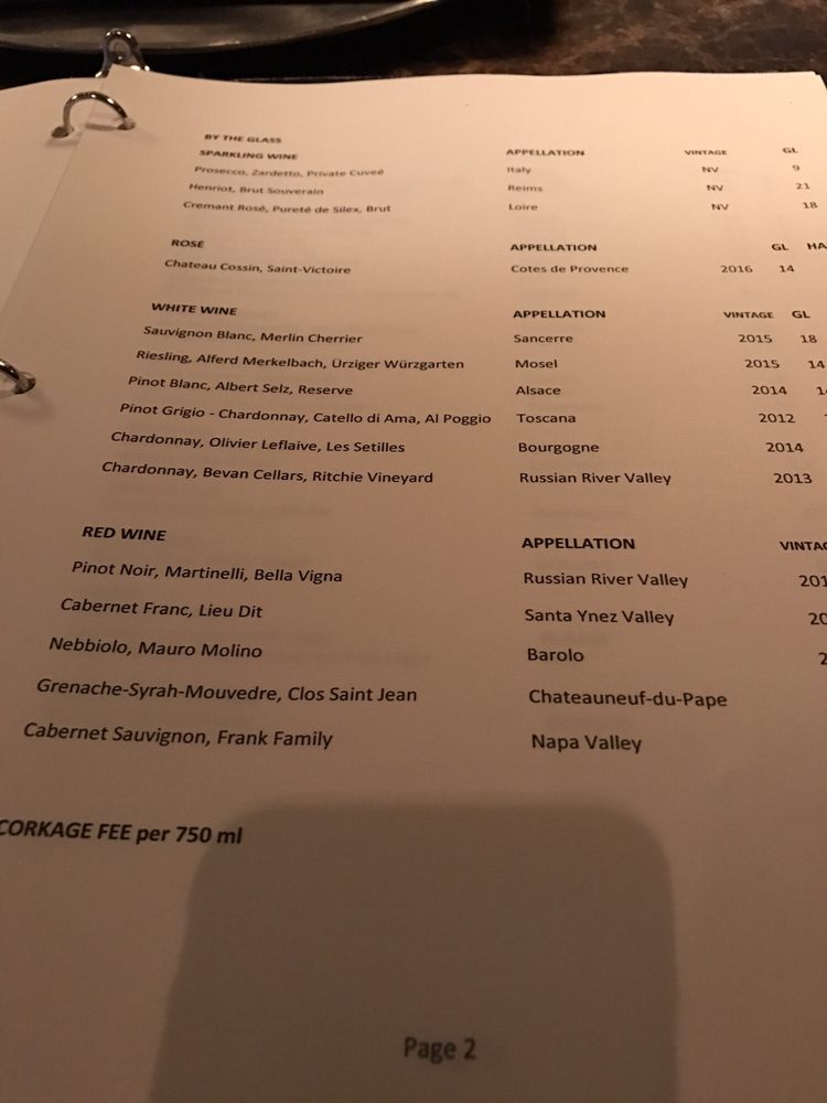 summerland farm chestnut pear, celery, lemon thyme 25 dollar supplement. wine pairing:nebbiolo, reversanti, barbaresco, italy 2009 $11
