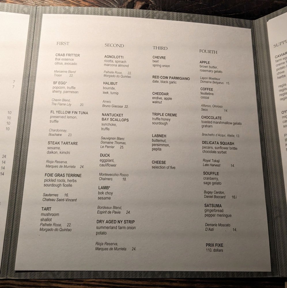 italian eggplant ricotta whey, shishito peppers local oyster mushrooms, wine pairing: chardonnay, far niente, napa valley 2012 $13